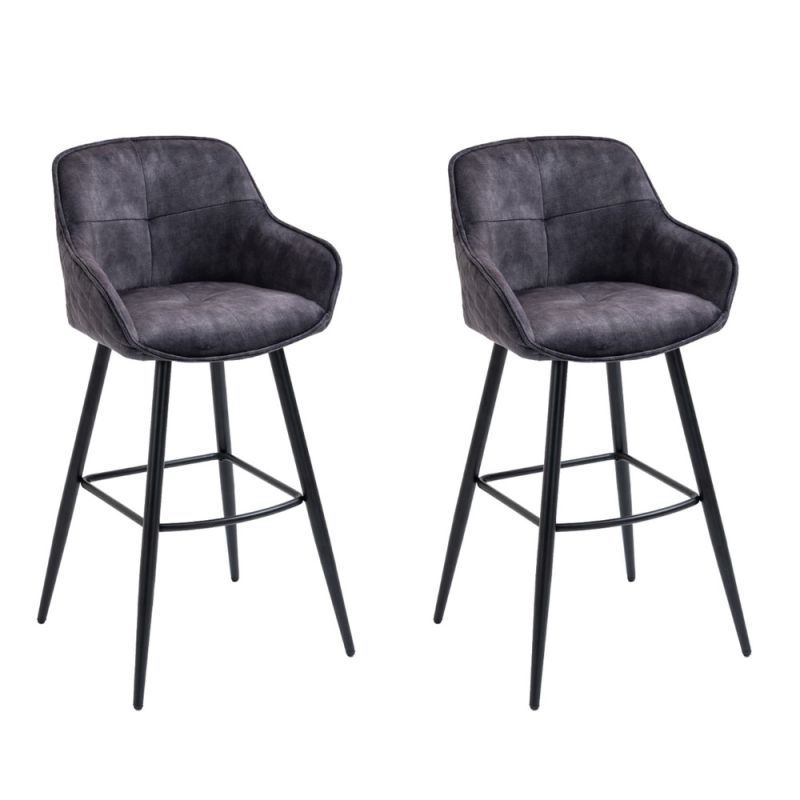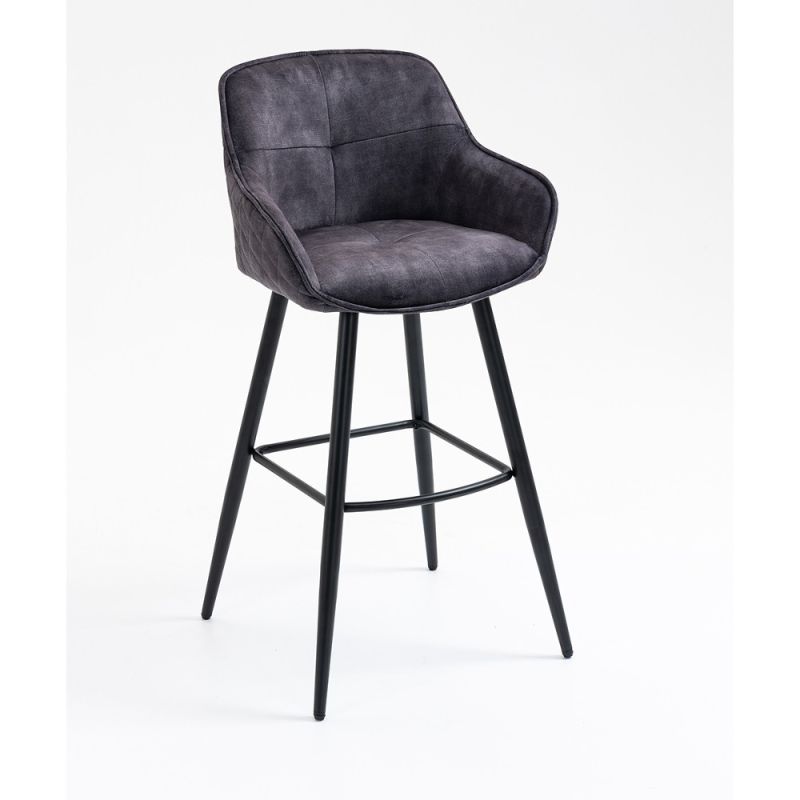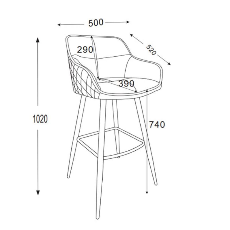 Barska stolica s naslonom za ruke, noge i naslonom za leđa, presvučena mekanom tkaninom.