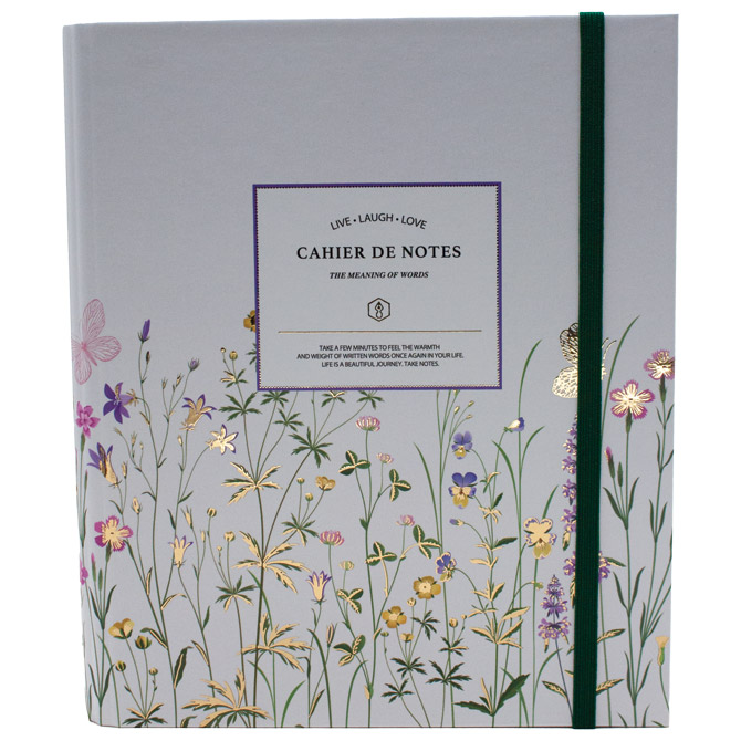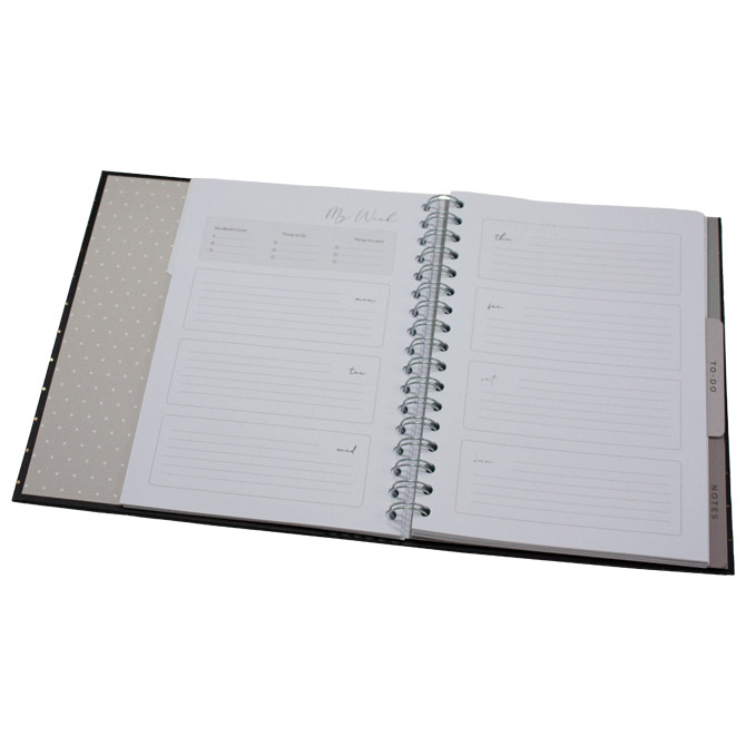 Specifikacija: format: B5; dimenzija: 16,5×22,5 cm; crte; tvrdi uvez; 96 listova; 90 g/m2; skrivena spirala; s gumicom