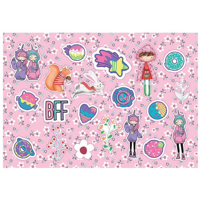 Specifikacija: dimenzija: 23×33 cm; 40 L; sadrži: naljepnice, šablone i 2 bojanke; idealan za beskonačne sate kreativnih aktivnosti u školi i kod kuće