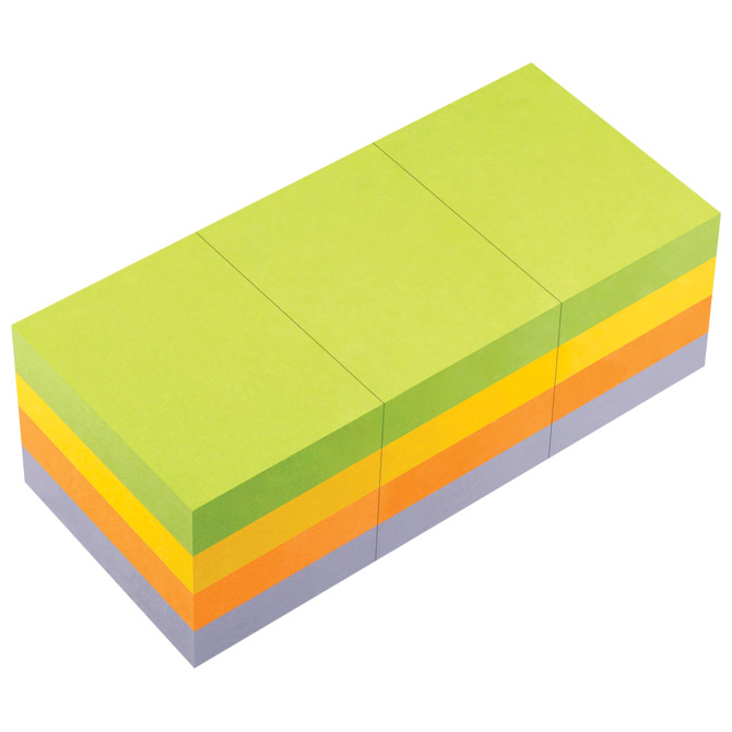 Specifikacija: dimenzija: 40×50 mm; 12×100 listova; mogućnost višestrukog premještanja; ljepilo je bez otapala izrađeno na bazi vode; 4 neon boje: ljubičasta, narančasta, zelena i žuta