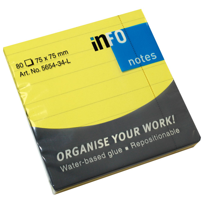 Specifikacija: dimenzija: 75×75 mm; 80 listova; mogućnost višestrukog premještanja; ljepilo je bez otapala izrađeno na bazi vode