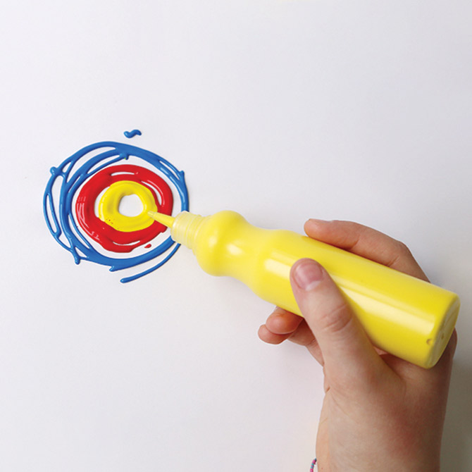 Specifikacija: visokokvalitetna boja za plakat spremna za upotrebu; u ergonomskoj bočici s mlaznicom za kontrolu protoka za doziranje boje sa velikom preciznošću prije nego što se upotrijebi kist; omogućuje stvaranje neprozirnih nijansi boja i u slojevima nakon što se potpuno osuši; trag boje nakon poteza s kistom je jednolik s izvrsnim rezultatima u svjetlini i intenzitetu; može se koristiti na različitim površinama kao što su: papir, karton, drvo i tkanina; može se fiksirati lakom ili drugim prikladnim proizvodom; može se koristiti zajedno sa proizvodima na bazi vode; mrlje treba odmah ukloniti; kartonska kutija; Kreativni prijedlog: Uzmite gusti, grubi ili glatki, obojeni ili bijeli karton i dozirajte jednu za drugom, jednu u drugu, bez miješanja boja; dobit ćete preklapajuće i koncentrične slojeve različitih boja; zatim “povucite boju” u različitim smjerovima pomoću čačkalice ili bilo kojeg predmeta sa šiljastim krajem; dobit ćete fantastične i iznenađujuće efekte tipične za pravog umjetnika!
