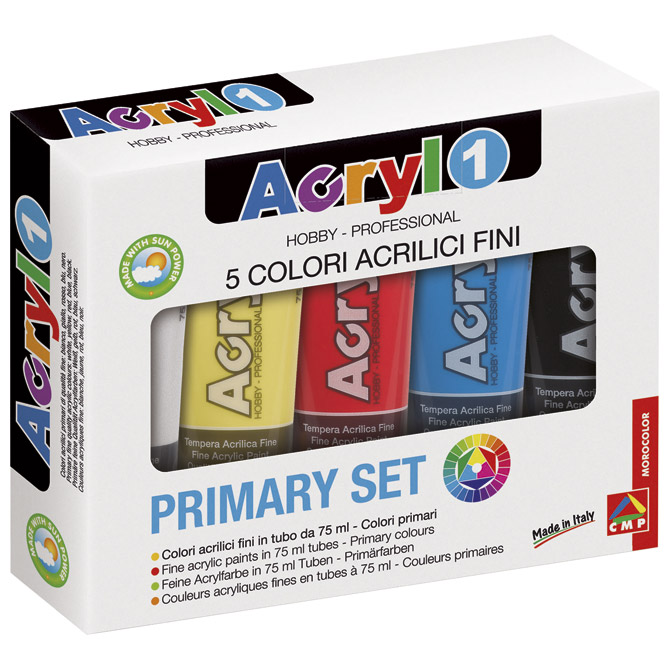 Specifikacija: 75 ml; PVC tuba; fina akrilna boja; na vodenoj bazi najfinije kvalitete s visokom koncentracijom pigmentirane akrilne suspenzije; karakterizira ju velika neprozirnost; nakon što se osuši potpuno je postojana; može se koristiti na bilo kojoj vrsti površine: papir, plastika, drvo, slikarsko platno, staklo i dr.; može se nanjeti u tanjem i debljem sloju; lako se nanosi, a nanosi su dosljedni, elastični, živopisni, ugodni i otporni na dodir; potrebno je najmanje 24 sata da se potpuno osuši; temperature bi se trebale kretati između 18 i 25 ° C; velika otpornost; za bolju povezanost boje sa podlogom nanjeti primer, a za bolje fiksiranje boje nanjeti bezbojni akrilni lak (mat ili sjajni); pogodna je za razne tehnike, ali i za ukrašavanje i hobi aktivnosti poput decoupagea jer vrlo dobro reagira na lakove i aditive koji se koriste u takvim tehnikama; tonovi su intenzivni, a efekti impresivni; njihovim miješanjem mogu se dobiti novi skladni i živopisni tonovi; može se lakirati akrilnim lakom i stoga postati dugotrajniji, svjetliji i trajniji; može se miješati sa proizvodima na bazi vode