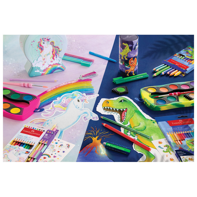 Specifikacija: šiljene; debljina mine: 3,3 mm; trokutaste; ergonomske; kad se sa mokrim kistom prijeđe preko crteža dobije se akvarel (crtež nacrtan sa vodenom bojom); s patentiranim gripom za sigurno, ne klizno držanje; živopisne boje; jako mekan vrh za veću pokrivenost površine papira bojanjem; posebno je otporna na lomljenje (specijalno spajana – SV); ispiru se sa većine tkanina; visoke performanse; eko olovka (drvo iz certificiranog održivog šumarstva); tijelo lakirano eko lakom na bazi vode; pogodna za ljevake i dešnjake; mjesto za upisivanje imena na svakoj bojici; kartonska kutija; blister