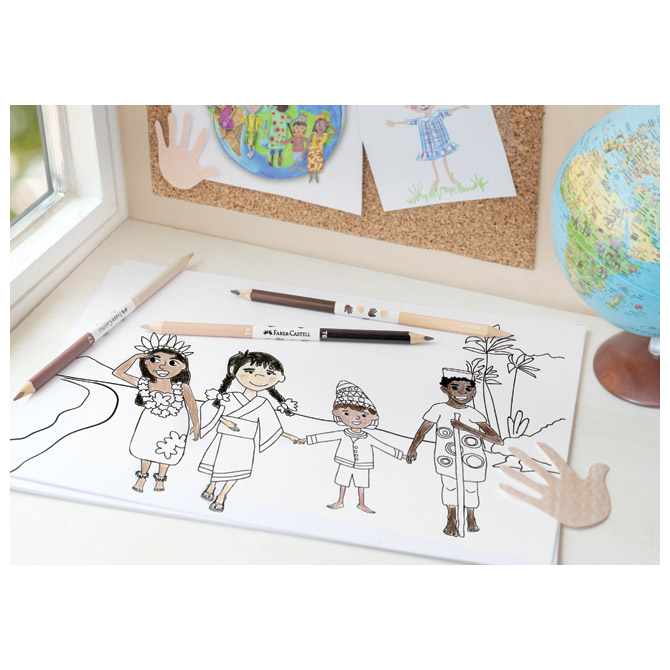 Specifikacija: šiljene; trokutaste; ergonomske; posebno je otporna na lomljenje; eko olovka (drvo iz certificiranog održivog šumarstva); boje se jako lako miješaju što omogućuje dobivanje različitih nijansi boja; set od 3 obostrane olovke (6 boja kože); blister