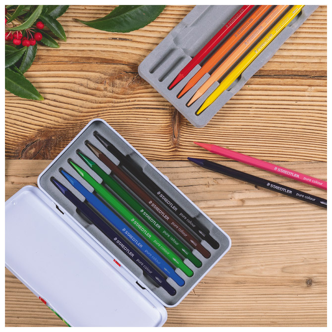 Specifikacija: šiljene; šesterokutne; promjer olovke/mine: 7 mm; duljina olovke/mine: 14,5 cm; za: Aquarelle papir (od 250 g/m2 i više); lako se šilje standardnim šiljilom; sa akvarel jezgrom (cijela boja je vodena – nema drveni vanjski dio); površina olovke je lakirana kako bi ruke ostale čiste; brojne mogućnosti bojanja sa kistom i vodom; za crtanje na crnom i bijelom papiru; puna mina je idealna za izradu velikih skica te sjenčanje širih površina; set od 12 boja; metalna kutija; blister