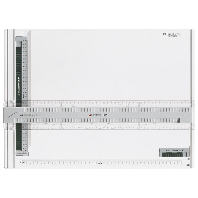 Specifikacija: format: A3; dupli žljebovi za lakše poteze paralelnog ravnala; spona za papir čvrsto drži; lako za otkvačiti i ponovo zakvačiti; paralelnim ravnalom se može upravljati jednom rukom u svim položajima; idealno i za ljevake; paralelno ravnalo ima mehanizam za zaključavanje; široke kvačice za papir; pomoćne mjere na ploči i paralelnom ravnalu; ravnalo s linijama od 7 i 42 stupnja za izometrijsko crtanje; mjera za šestare zajedno s rupama; Stop/Kreni “semafor” pokazatelj; podizači za prste na obje strane paralelnog ravnala; stoperi na svakom kraju žlijeba; napravljena od kvalitetnih plastičnih materijala pa je laka i stabilna; ne klizajuća guma s donje strane