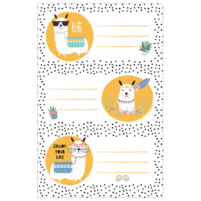 Specifikacija: papir; 3 etikete na listu; set od 3 lista; blister