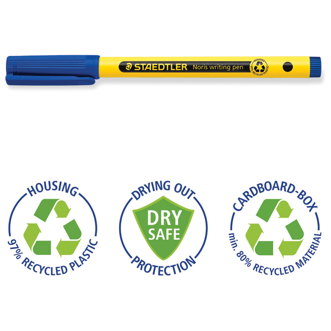 Specifikacija: čvrsti i otporni vrh; širina ispisa: 0,6 mm (F); tijelo i poklopac su izrađeni od 97 % reciklirane plastike; tinta na bazi vode; može se isprati sa većine tipova tekstila; može biti nezatvoren danima bez isušivanja (dry safe); siguran rad u zrakoplovu zahvaljujući sustavu za izjednačavanje tlakova koji sprječava istjecanje tinte (airplane safe)