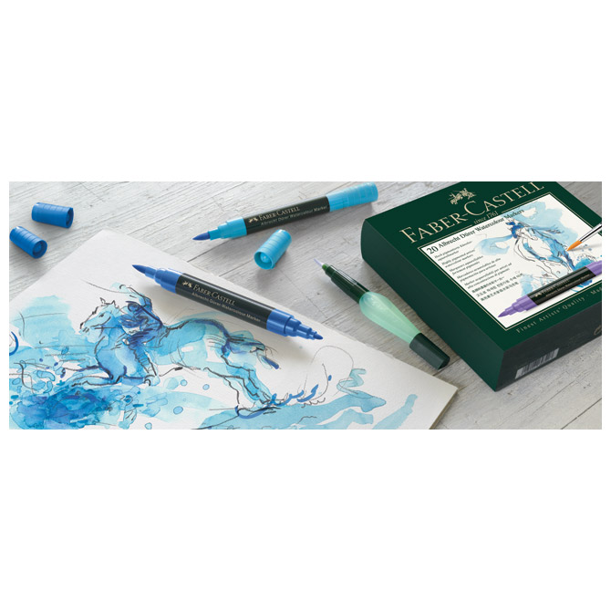 Specifikacija: 2 vrha (soft brush vrh za dinamične skice i čvrsti vrh za crtanje kontura, preciznih linija i detalja); tinta na bazi vode; tinta topiva u vodi; visokokvalitetni pigment; izvrsni efekt vodene boje na papiru za vodene boje; izvrsna svjetlosna postojanost; tinta ne prolazi na drugu stranu papira; u kartonskoj kutiji