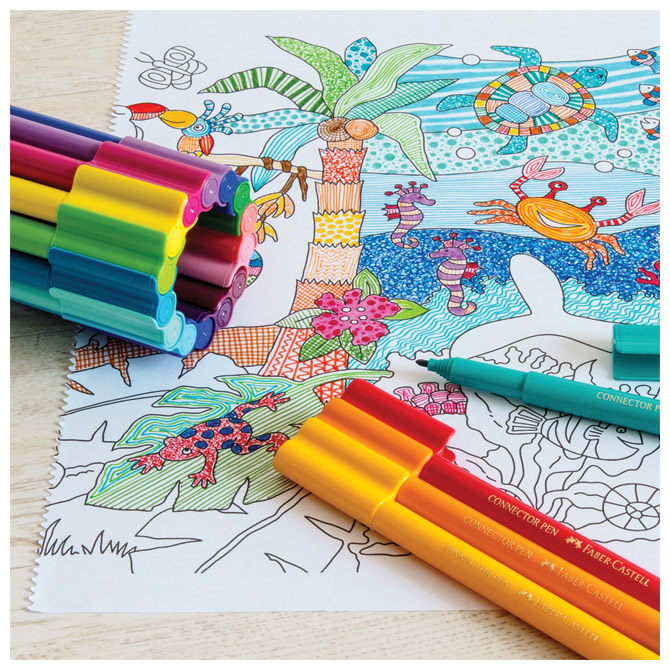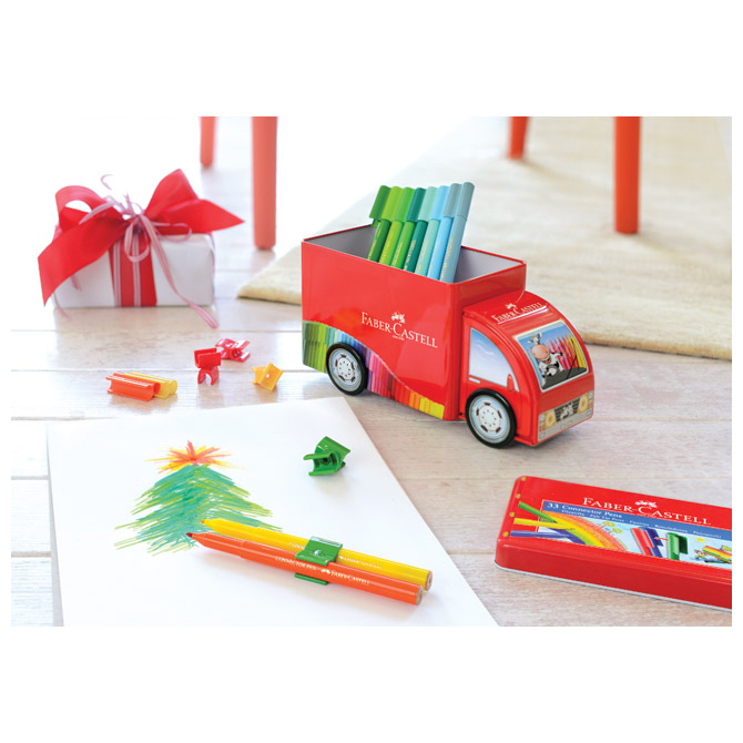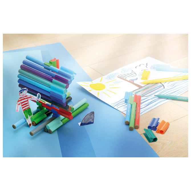 Specifikacija: okrugli vrh; flomasteri se mogu međusobno spojiti posebnim utorom na čepu; živopisne boje; idealan za bojanje, slaganje i igranje; sa 10 raznobojnih okretnih konektora koji se mogu koristiti u više svrha: istovremeno bojati sa 2 ili više flomastera, pomoću njih raditi razne maštovite zabavne predmete; ispire se sa većine tkanina; set od 33 boje; u metalnoj kutiji