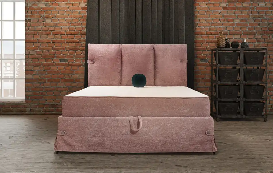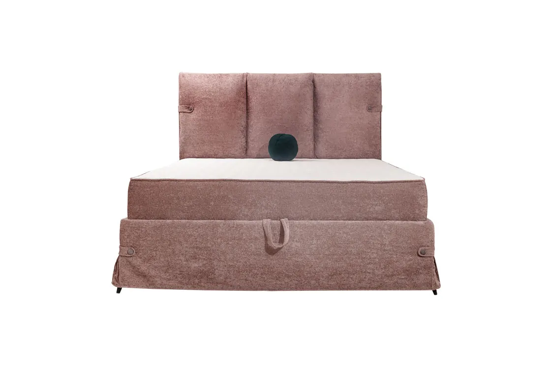 Ležaj sa metalnim nogama. Ležaj posjeduje ostavu za odlaganje.