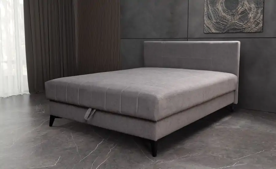 Ležaj sa drvenim nogama u nekoliko boja. Ležaj posjeduje ostavu za odlaganje.