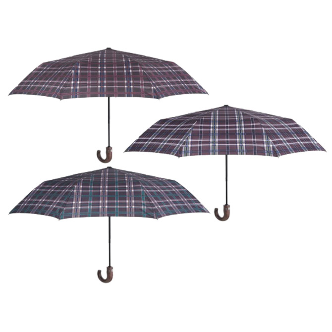 Specifikacija: automatik; otvaranje i zatvaranje automatski s gumbom; s drvenom ručkom; polumjer zatvorenog kišobrana: 56 cm; 8 panela; fi: 104 cm; otporan na vjetar; žice od fiber glass-a; od mikrofibre (odbija kapljice kiše i brzo se suši); iznimno lagan; sa futrolom; 3 dezena