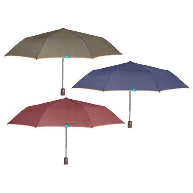 Specifikacija: automatik; s plastičnom drškom; polumjer zatvorenog kišobrana: 54 cm; 8 panela; fi: 96 cm; sa futrolom; žice od fiber glass-a; otporan na vjetar; od mikrofibre (odbija kapljice kiše i brzo se suši); 3 boje; zlatni rub