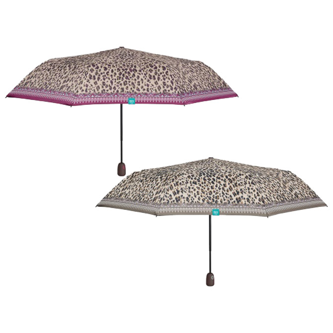 Specifikacija: automatik; s plastičnom drškom; polumjer zatvorenog kišobrana: 54 cm; 8 panela; fi: 98 cm; sa futrolom; žice od fiber glass-a; otporan na vjetar; od mikrofibre (odbija kapljice kiše i brzo se suši); leopard uzorak; 2 dezena