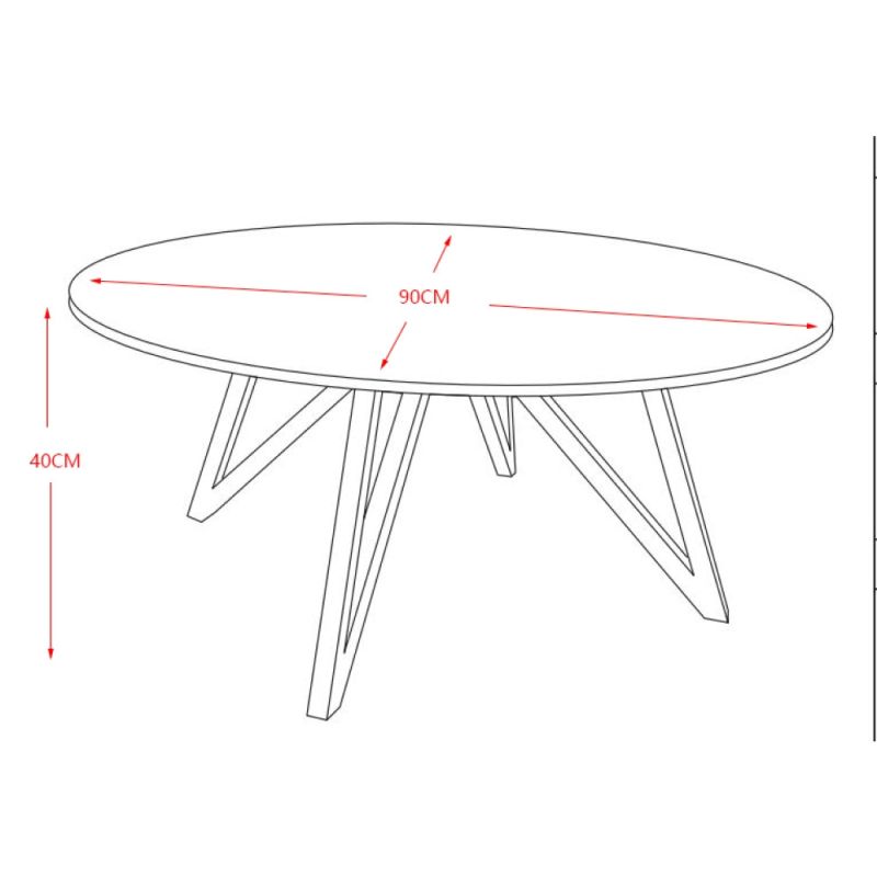 Ploča je debljine 1,2 cm i ima promjer 90 cm. Nosač ploče stola izrađen je od MDF materijala.