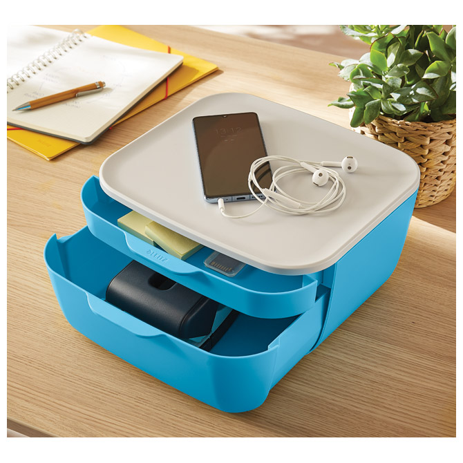 Specifikacija: 2 ladice; zatvorena; dimenzija: 275x251x143 mm; jedna manja i jedna veća ladica za pohranu predmeta kao što su: olovke, notesi, kabel, bušač..; za dokumente manje od formata A4; mat površina; idealna za urednu pohranu stolnog pribora i uštedu prostora; idealna za dom i ured; može se kombinirati s ostalim Leitzovim proizvodima iz Cozy asortimana za udobnost i stil uz vrhunsku kvalitetu, idealno za produktivno radno okruženje; izrađena od Polystyrena (PS); bez BPA and BPS