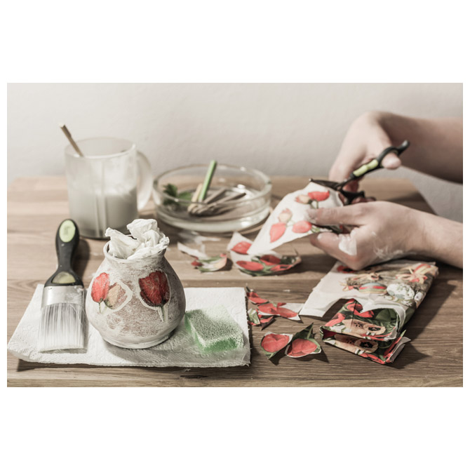 Specifikacija: 125 ml; na vodenoj bazi; za: papir i izradu dekupaža; savršeno prianja na površine, a zahvaljujući sjaju omogućuje svjetlosne efekte i ima zaštitnu funkciju (djeluje kao ljepilo i lak); spojevi se mogu bojati akrilnim bojama; maksimalno razrjeđivanje s vodom: 1:1; jednom osušen trajan je i ne može se isprati s tekstila i ostalih površina stoga kistove treba očistiti nakon upotrebe i mrlje odmah ukloniti vodom; za savršeni dugotrajni učinak preporučuje se pričekati dok se proizvod potpuno ne osuši