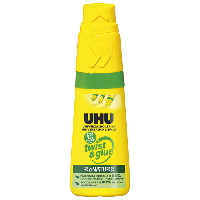 Specifikacija: u plastičnoj boci; s jedinstvenim aplikatorom koji se može namjestiti u 3 položaja za lijepljenje točaka, linija i površina; bez otapala; formula ljepila sastoji se od 70 % prirodnih materijala i dermatološki je testirana; ReNature (manja potrošnja fosilnih sirovina; niže emisije CO2; 100 % reciklirajuće); nije zapaljivo; za: papir, karton, drvo, filc, tekstil i pluto; za međusobno lijepljenje tih materijala ili njihovo lijepljenje na metal, porculan, staklo, Styropor® i brojne umjetne materijale; nije prikladno za fotografije, polietilen (PE) i polipropilen (PP); čisti se pranjem sapunom dok je svježe; ambalažu čini 88 % biljnog materijala; moguće je ponovno punjenje; 35 ml