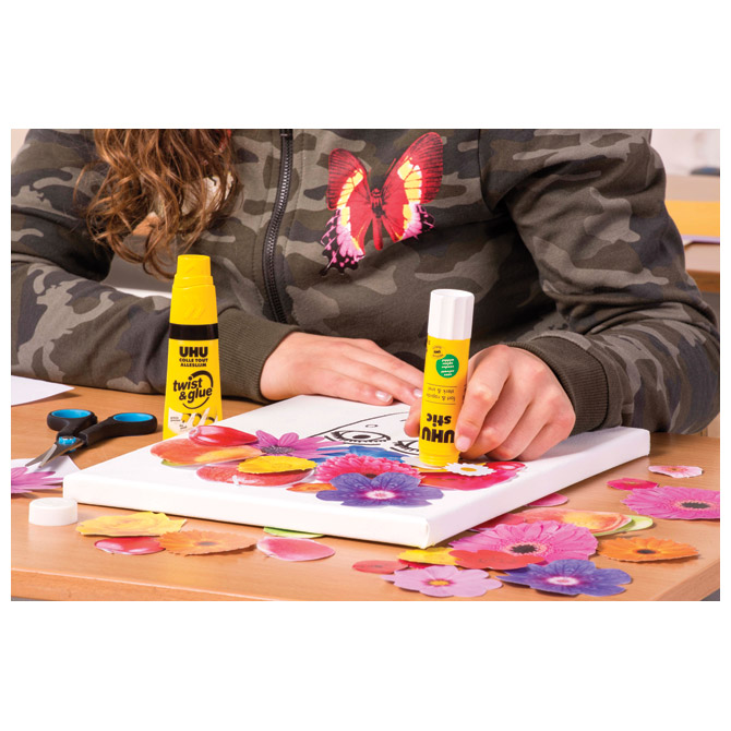 Specifikacija: tekuće; u plastičnoj boci; s jedinstvenim aplikatorom koji se može namjestiti u 3 položaja za lijepljenje točaka, linija i površina; za: papir, karton, drvo, filc, tekstil, kožu i pluto; za međusobno lijepljenje tih materijala ili njihovo lijepljenje na metal, porculan, staklo, Styropor® i brojne umjetne materijale; nije pogodno za lijepljenje fotografija, polietilen (PE) i polipropilen (PP); brzo se suši; čisti se pranjem s praškom na 60° C; moguće je ponovno punjenje