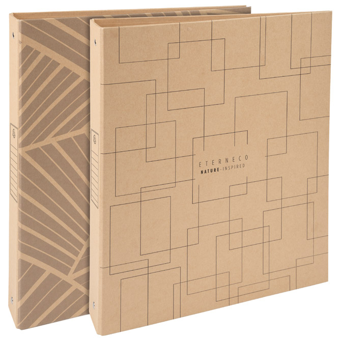Specifikacija: format: A4; dimenzija: 260×320 mm; 4 ringa; ring fi: 30 mm; hrbat: 40 mm bez etikete (s otisnutim linijama za lakše označavanje sadržaja); kapacitet: 275 listova; reciklirani karton premazan biljnim uljem što omogućuje učinkovitu zaštitu od vlage i vode; 2 motiva; FSC certifikat