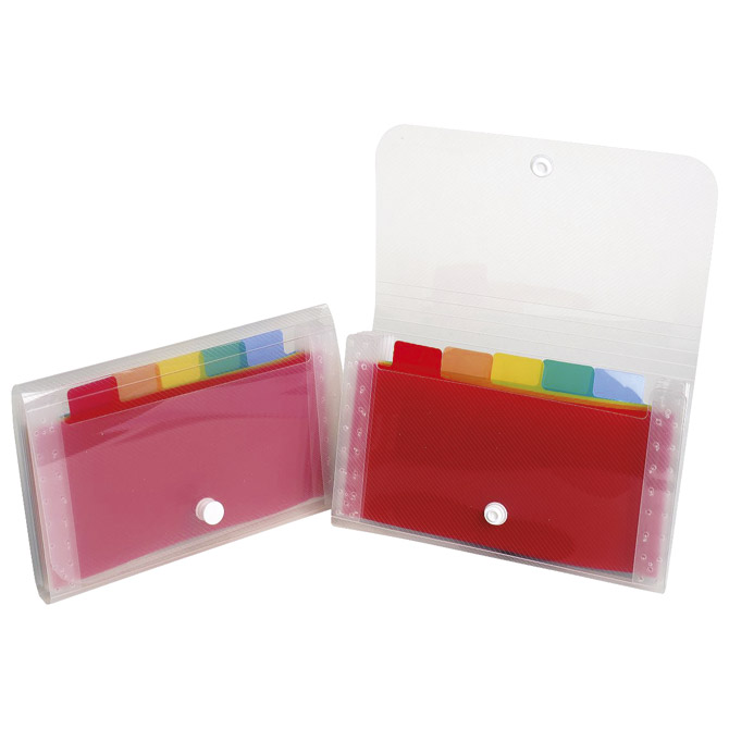 Specifikacija: dimenzija: 180×110 mm; PP; ima 6 pregrada u boji; s gumbom