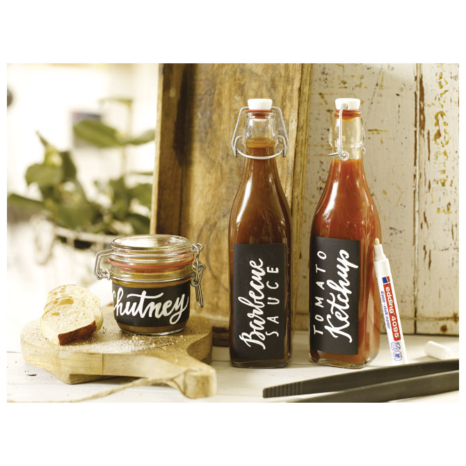 Specifikacija: nepermanentni; okrugli vrh; širina ispisa 2-3 mm; tekuća kreda na bazi vode; otporan na svjetlo; za pisanje po glatkim površinama (staklo, prozor, tamna ploča…); briše se vlažnom krpom