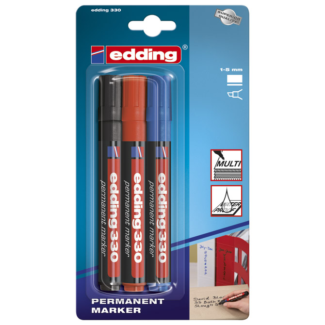 Specifikacija: s mogućnošću ponovnog punjenja; klinasti vrh; širina ispisa 1-5 mm; puni se Edding tušem T 25 i MTK 25; vodootporan; prikladni su za trajne natpise, isticanja i označavanja na gotovo svim materijalima (staklo, metal, plastika,…); blister