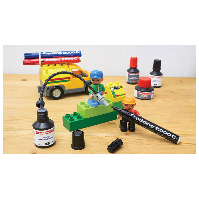 Specifikacija: s mogućnošću ponovnog punjenja; okrugli vrh; aluminijsko kućište; širina ispisa 1,5-3 mm; vodootporan; nakon sušenja otporan na vodu i brisanje; postojan na svjetlu; za pisanje, isticanje i označavanje na svim materijalima (staklo, metal, plastika,…); visoka otpornost na: svjetlo, brisanje i vrućinu