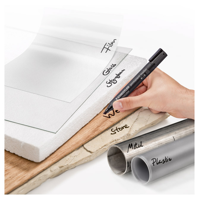 Specifikacija: klinasti vrh; širina ispisa 2-5 mm; spremnik i poklopac PP; vodootporan; otporan na UV svjetlost; brzo se suši (pa je pogodan za ljevake); ne razmazuje se; slabog mirisa; primjenjuje se na gotovo svim površinama; može biti nezatvoren danima bez isušivanja (dry safe); siguran rad u zrakoplovu zahvaljujući sustavu za izjednačavanje tlakova koji sprječava istjecanje tinte (airplane safe); ekološka tinta (bez ksilena i toulena)