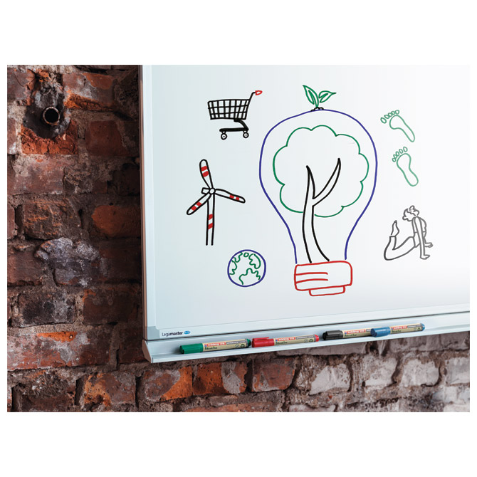 Specifikacija: nepermanentni; s mogućnošću ponovnog punjenja; okrugli vrh; širina ispisa: 1,5-3 mm; otporan na svjetlo; brzo se suši; lako se briše sa svih glatkih površina (staklo, melamin,…); za pisanje po svim glatkim površinama i bijeloj ploči; marker može biti bez poklopca par dana, a da se ne osuši; Eco-friendly (najmanje 90 % ukupne plastike je napravljeno od recikliranog materijala)