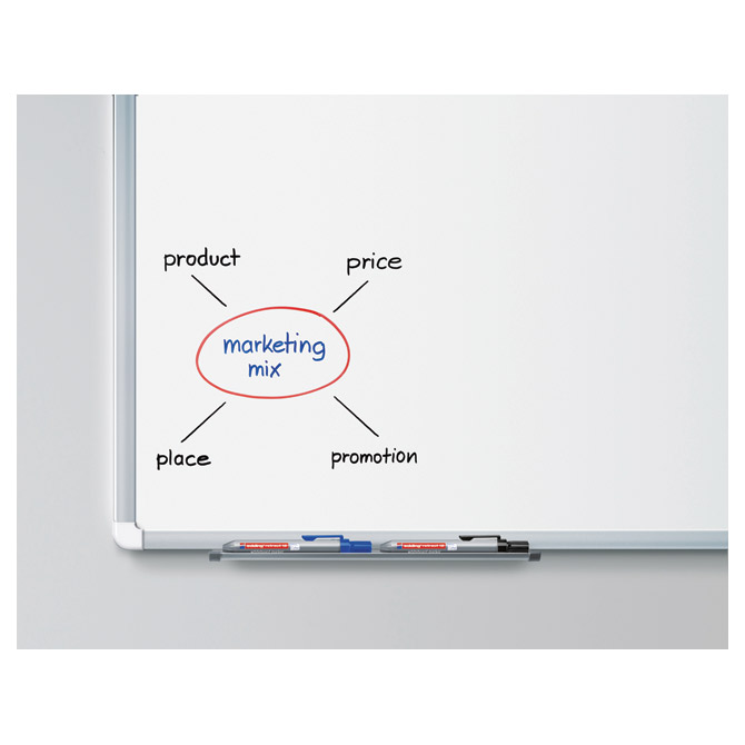 Specifikacija: nepermanentni; s mogućnošću ponovnog punjenja; okrugli vrh; širina ispisa 1,5-3 mm; bez kapice; sistem izvlačenja i uvlačenja koji čuva od isušivanja markera; lako se briše sa svih glatkih površina (staklo, melamin,…); za pisanje po svim glatkim površinama i bijeloj ploči