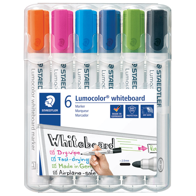 Specifikacija: nepermanentni; okrugli vrh; širina ispisa 2 mm; spremnik i poklopac PP; tinta topiva u vodi; brzo se suši; slabog mirisa; može se očistiti suhim postupkom s bijelih ploča i glatkih površina poput stakla i porculana bez tragova; može biti nezatvoren danima bez isušivanja (dry safe); siguran rad u zrakoplovu zahvaljujući sustavu za izjednačavanje tlakova koji sprječava istjecanje tinte (airplane safe); ekološka tinta (bez ksilena i toulena); tijelo je izrađeno od 97 % reciklirane plastike