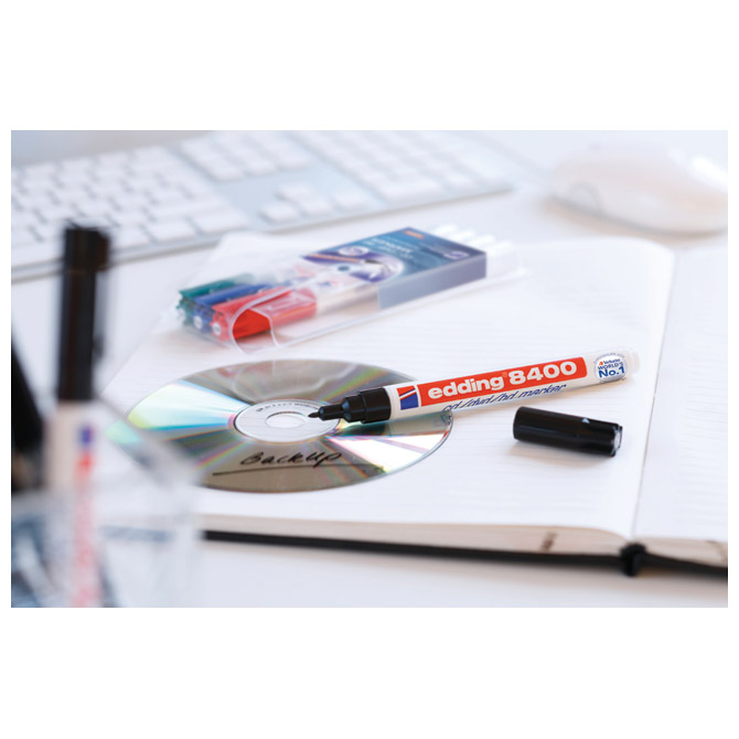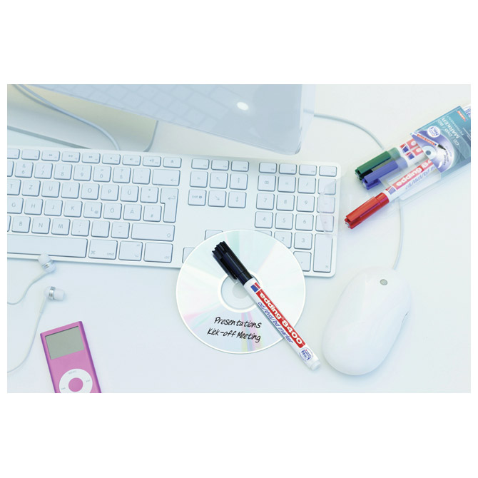 Specifikacija: permanentni, pigmentni; mekani okrugli vrh; širina ispisa 0,5-1 mm; vodootporan; jako otporan na svjetlo; za trajne natpise na CD-ima, DVD-ima i plastici; blister