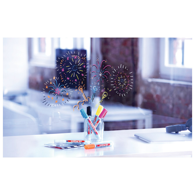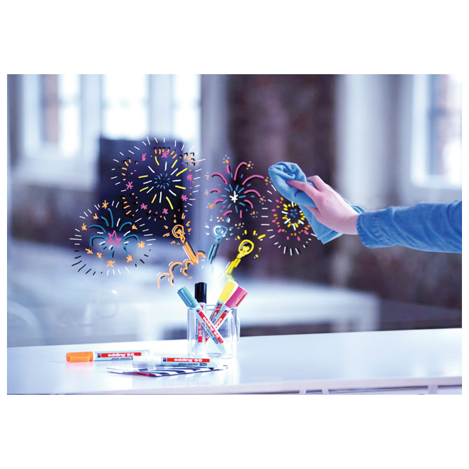 Specifikacija: nepermanentni; okrugli vrh; širina ispisa 1,5-3 mm; iznimno svijetao i neproziran; otporan na svjetlo; slabog mirisa; za pisanje po glatkim površinama (staklo, prozor, bijela ploča…); idealan za posao, kućni ured, kuhinju i sl., za bilježenje ideja vašeg tima, poticanje kreativnog razmišljanja, predstavljanje i praćenje projekata bilo kod kuće ili u uredu, pisanje poruka, dekoriranje i sl.; odmah spreman za upotrebu, bez potrebe za prethodnim aktiviranjem; briše se suhom krpom bez ostavljanja tragova; poklopac se može spremiti na kraj markera kako bi se spriječio rizik od gubitka; blister