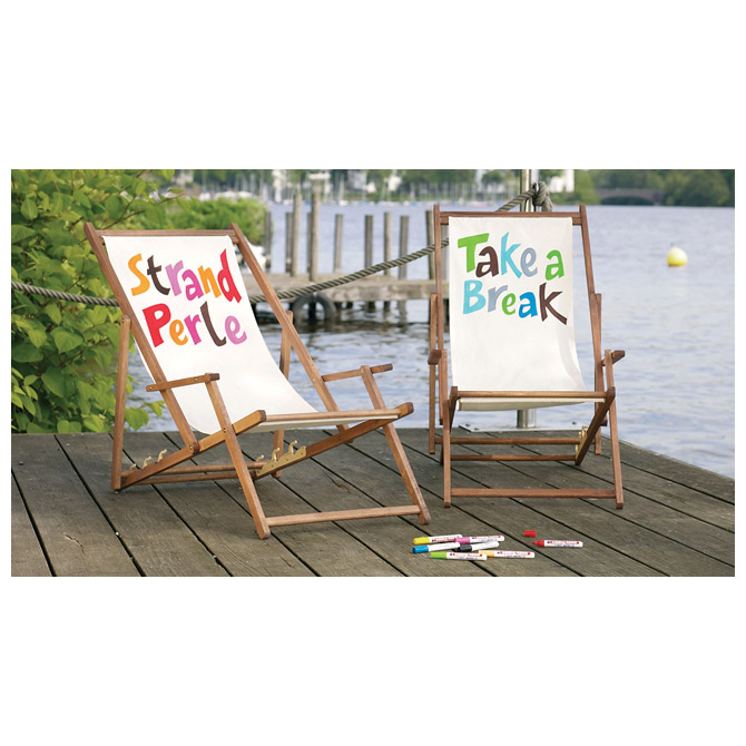Specifikacija: permanentni, pigmentni marker za majice (pamuk, svila, lan…); okrugli vrh; širina ispisa 2-3 mm; vodootporan; otporan na svjetlo; za fiksiranje glačati vrućom peglom bez pare; nakon fiksiranja otporan na pranje do 60° C; brzo se suši
