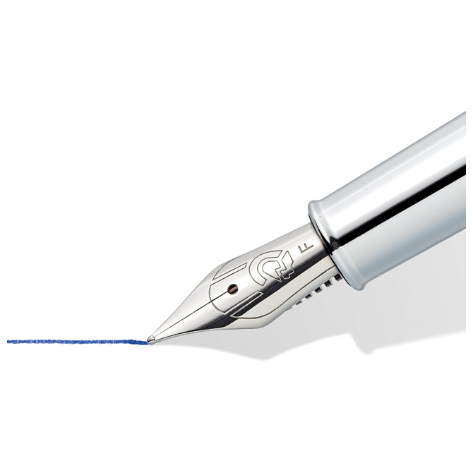 Specifikacija: metalno; debljina pera F (fine); trokutasto; sa ugraviranim natpisom STAEDTLER na prstenu i STAEDTLER Mars na kapici; u kartonskoj poklon kutiji