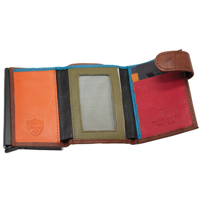 Specifikacija: kožni; za kartice s RFID zaštitom; odjeljak za sitan novac; dimenzija: 10×7 cm; zatvaranje na gumb; u poklon kutiji