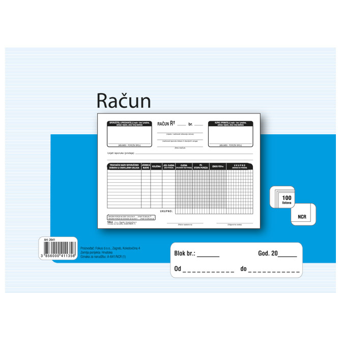 Obrazac A-641/NCR račun A5 (bezgotovinski) Fokus