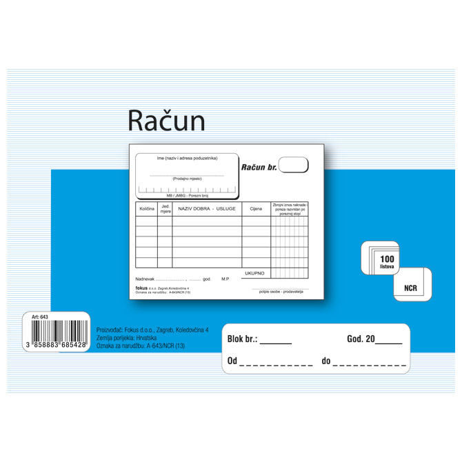 Obrazac A-643/NCR račun A6 (gotovinski) Fokus