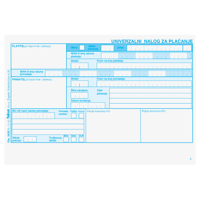 Obrazac HUB 3(1+2) set pk100 Fokus
