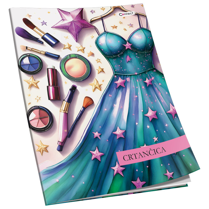 Specifikacija: format: B5; papir: 80 g/m2; korice mat plastificirane i parcijalno glitter (kunstdruck 300 g/m2); sa predlistom i zalistom