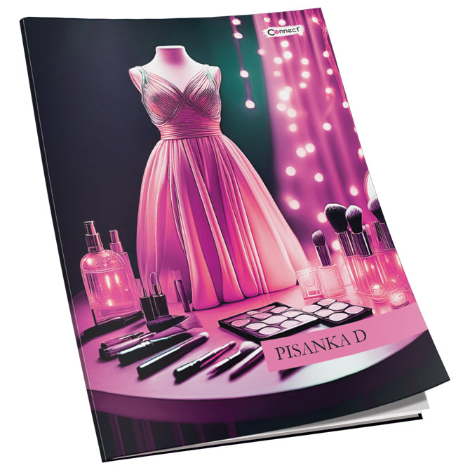 Specifikacija: format: B5; papir: 80 g/m2; korice mat plastificirane i parcijalno glitter (kunstdruck 300 g/m2); sa predlistom i zalistom