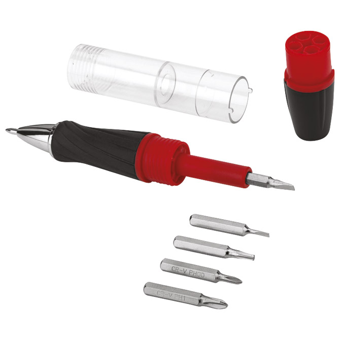 Specifikacija: 1 kemijska (plastično prozirno tijelo olovke), LED svijetiljka i magnetni odvijač sa 5 nastavaka; baterije uključene