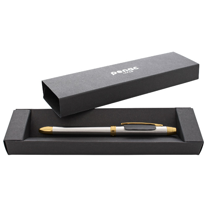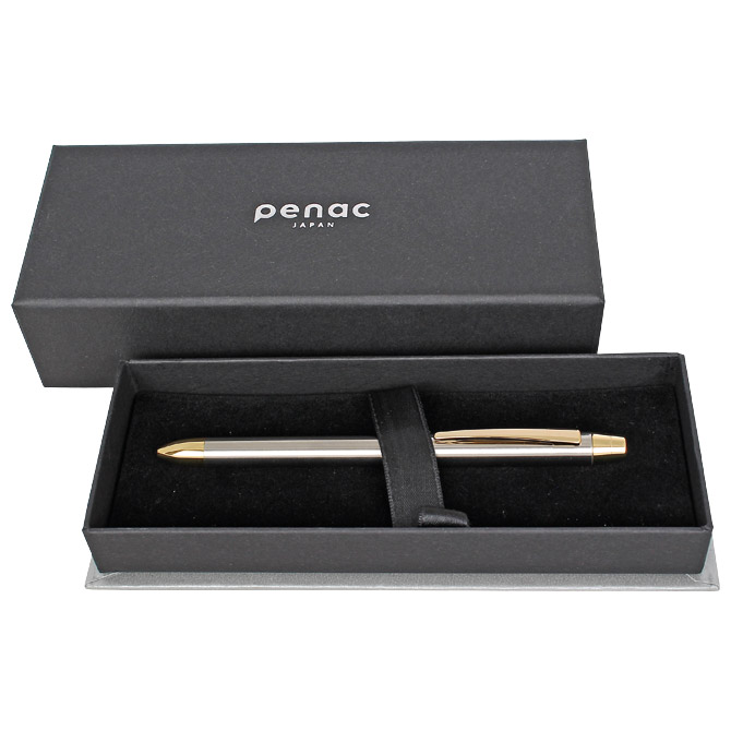 Specifikacija: 2 kemijske: 1 crvena i 1 plava tinta (mach ink) i tehnička olovka (mina 0,5 mm); okretni (twist) mehanizam (360°) u oba smjera; tijelo olovke od nehrđajućeg čelika; metalni vrh i klipsa; Mach tintu karakterizira niska viskoznost koja stvara osjećaj lagodnog klizanja po papiru; s gumicom (bez lateksa i PVC-a); rezervni uložak D1BR6707 (0,7 mm); u poklon kutiji