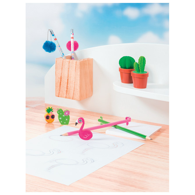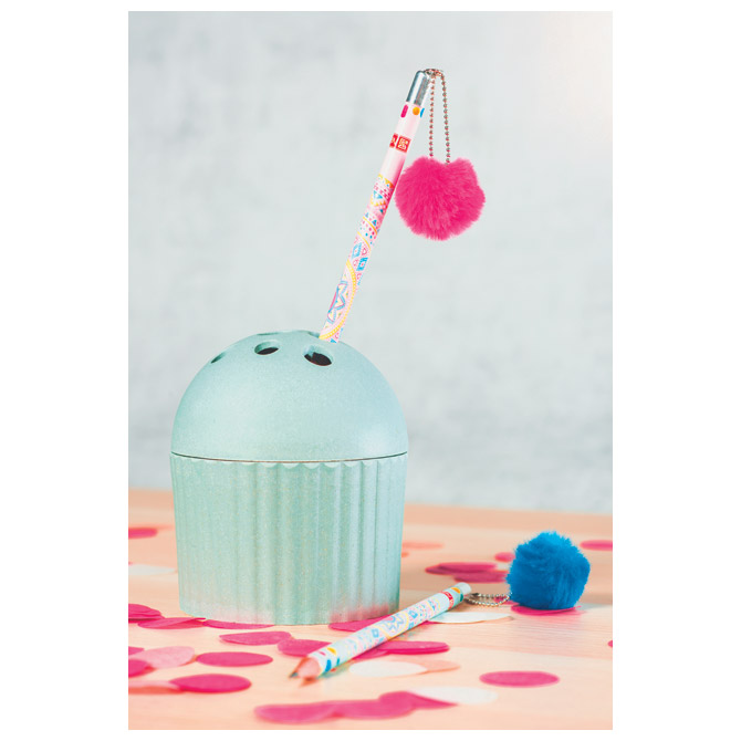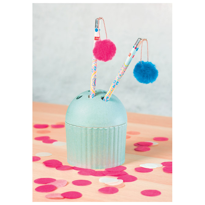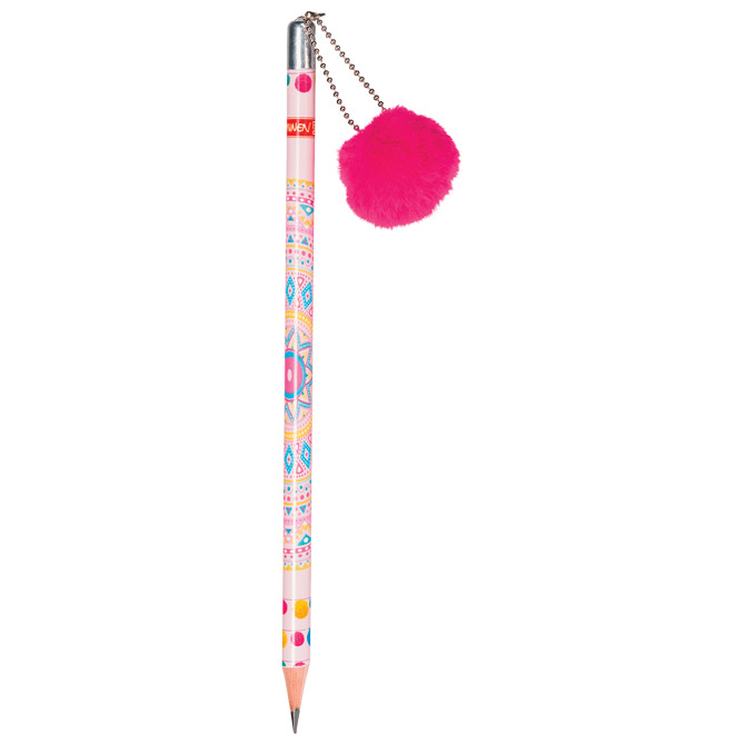 Specifikacija: tvrdoća: HB; šiljena; okrugla; duljina: 18 cm; bez gumice; lako se šilji; s privjeskom pompon; 2 boje: plava i roza