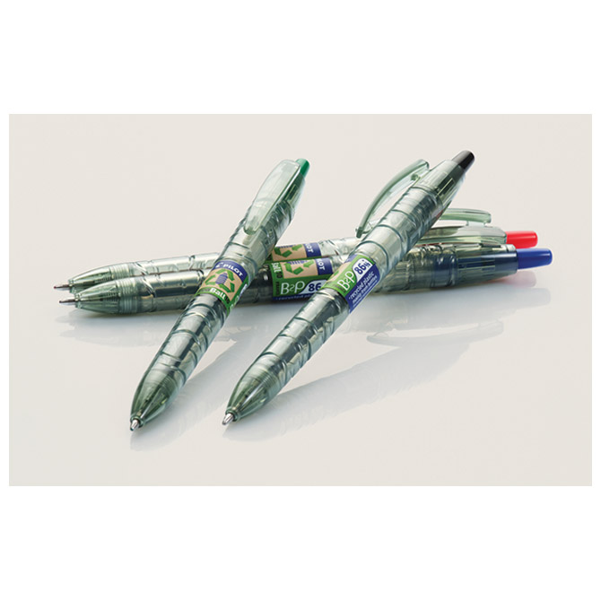 Specifikacija: promjer kuglice: 1,0 mm; širina ispisa: 0,27 mm; plastična klipsa i vrh; tinta na bazi ulja; omogućuje neuobičajeno glatko pisanje bez prekidanja crte; spremnik mutno proziran; pritisni mehanizam; B2P = “From bottle to pen” ideja da se učini “bolje sa manje” kako bi se ograničio ekološki utjecaj, Begreen – 86,6 % izrađen od recikliranih plastičnih boca (izuzev zamjenjivih dijelova) od kojih je 2,5 % reciklirana oceanska kruta plastika što je vrlo učinkovit i inovativan način sudjelovanja u borbi protiv onečišćenja mora; uložak RFNS-GG