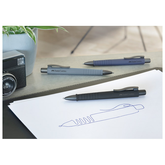 Specifikacija: promjer kuglice: 1,4 mm (XB); širina ispisa: 0,6 mm; s ergonomskim trokutastim oblikom; gumirano neklizajuće i mekano tijelo; metalni vrh i klipsa; pritisni mehanizam; tinta ne blijedi (document proof); boja tinte: plava; refil standardni velikog kapaciteta XB za izuzetno glatko pisanje (extra soft); u kartonskom poklon etui-u
