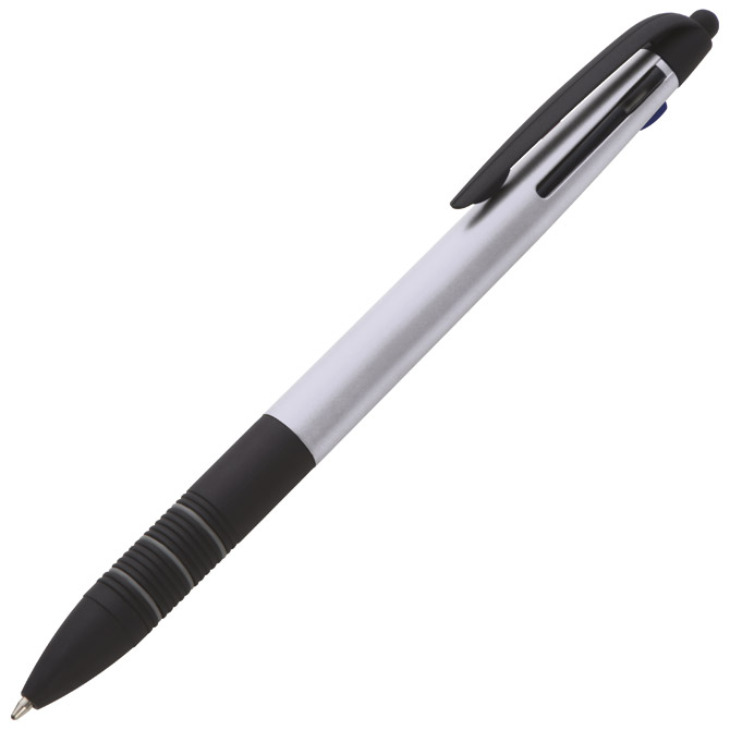 Specifikacija: gumirani grip (soft touch); plastično tijelo olovke; plastična klipsa i vrh; plastični uložak; crna klipsa i vrh; sa crnom kapicom za touch screen iznad klipse; pritisni mehanizam; boja tinte: crvena, crna i plava
